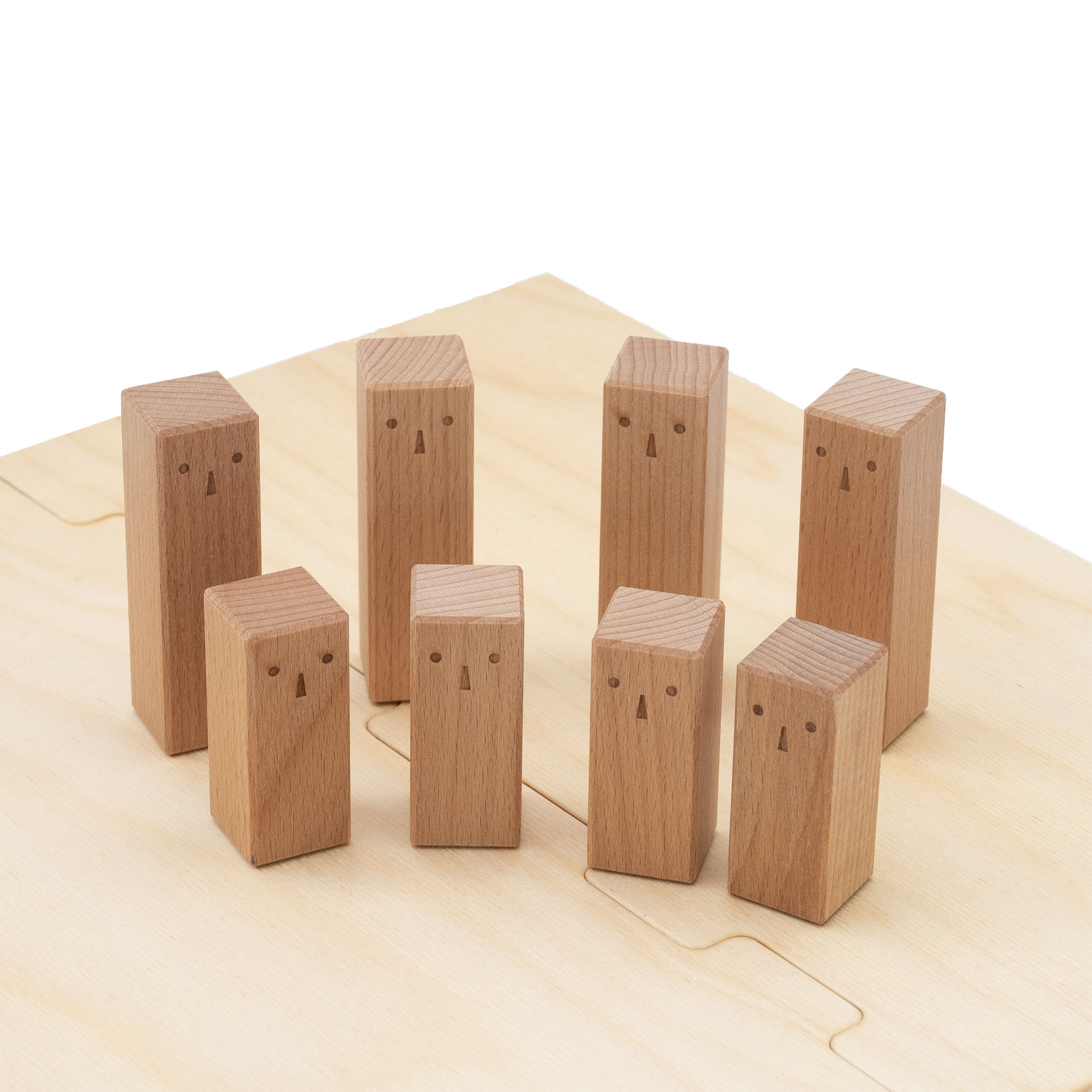 Unser Familienbrett, neu überarbeitet im Austausch mit Therapeuten. Die neuen Figuren bieten eine neutralere Möglichkeit Familienbeziehungen in der systemischen Familientherapie zu visualisieren.