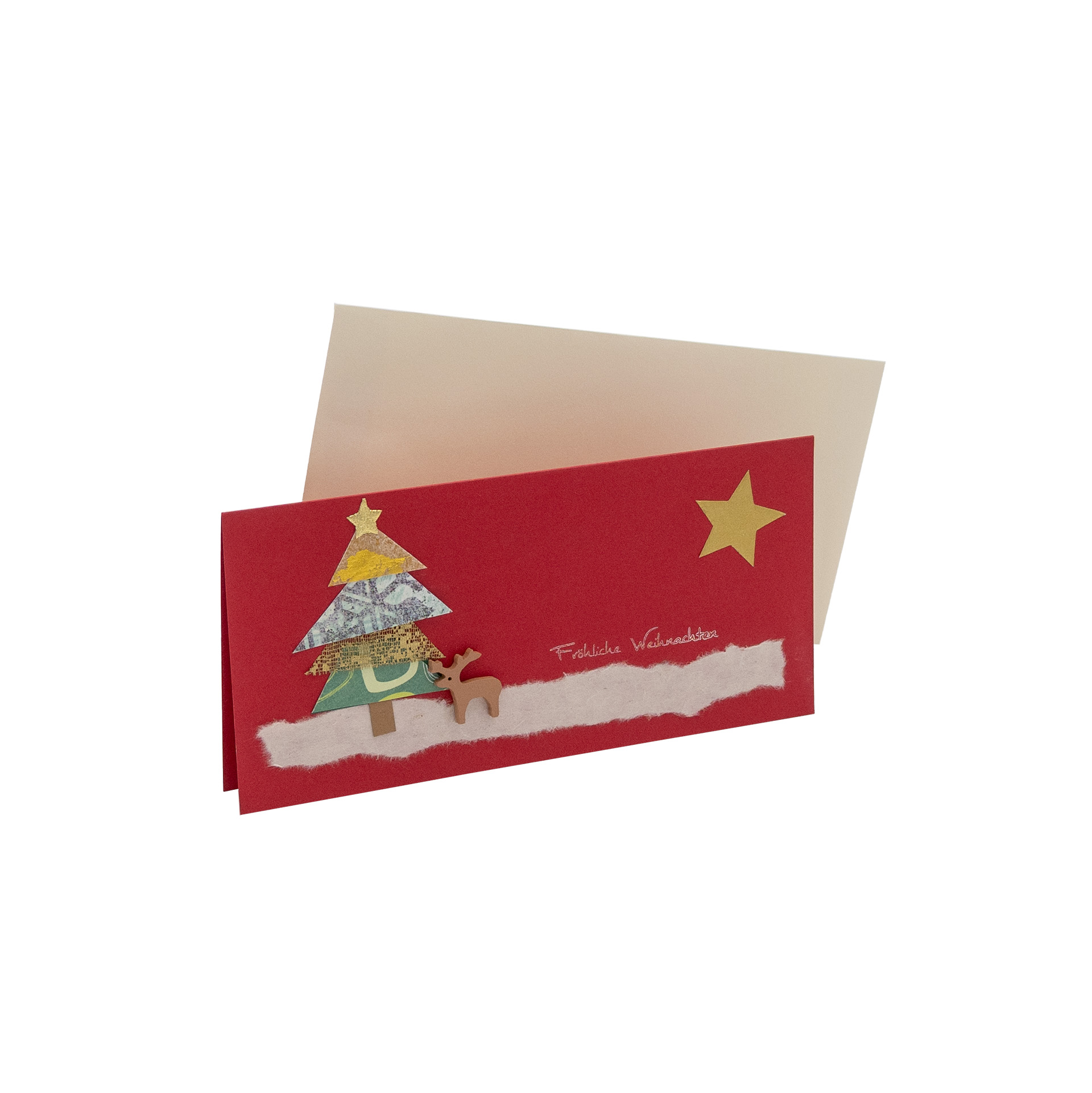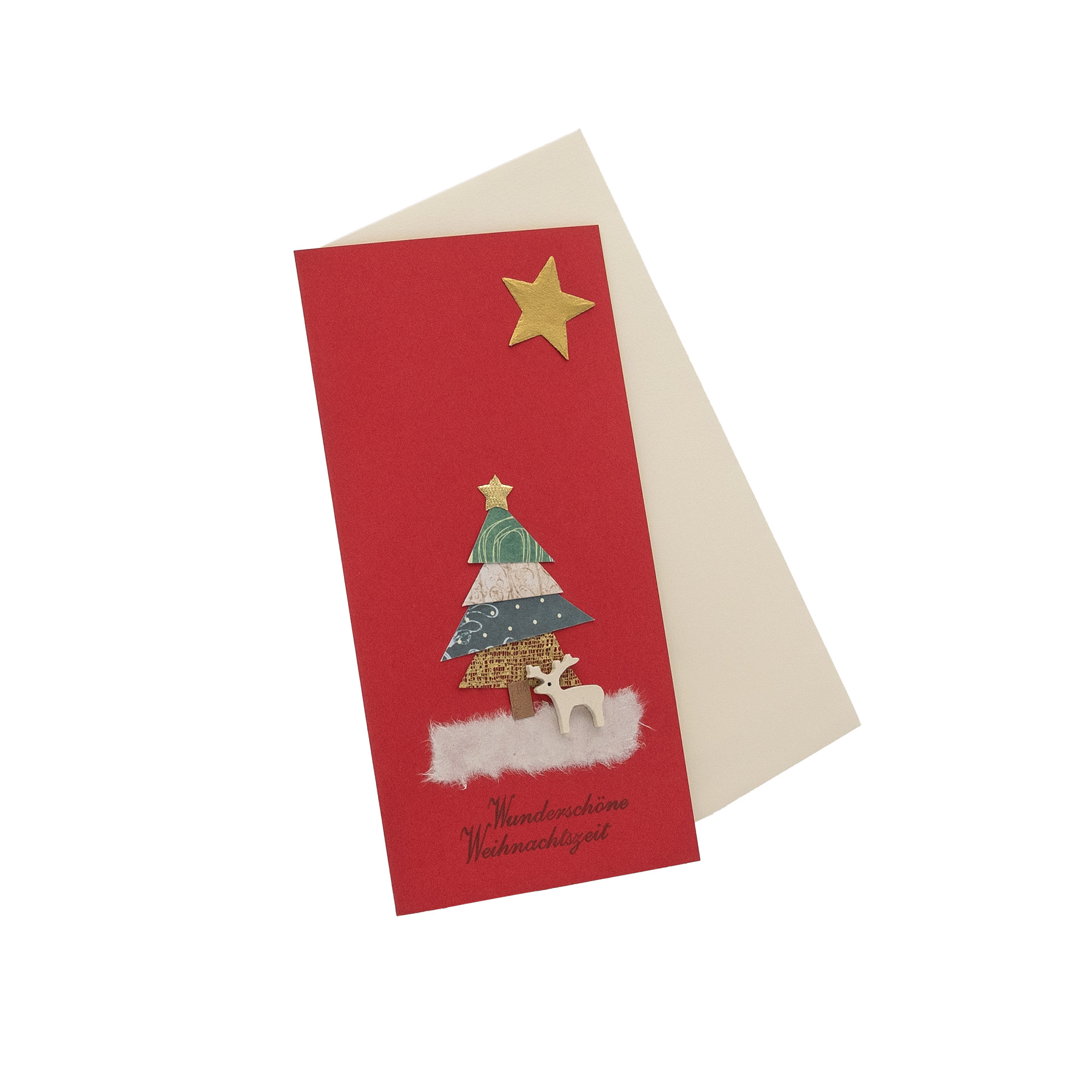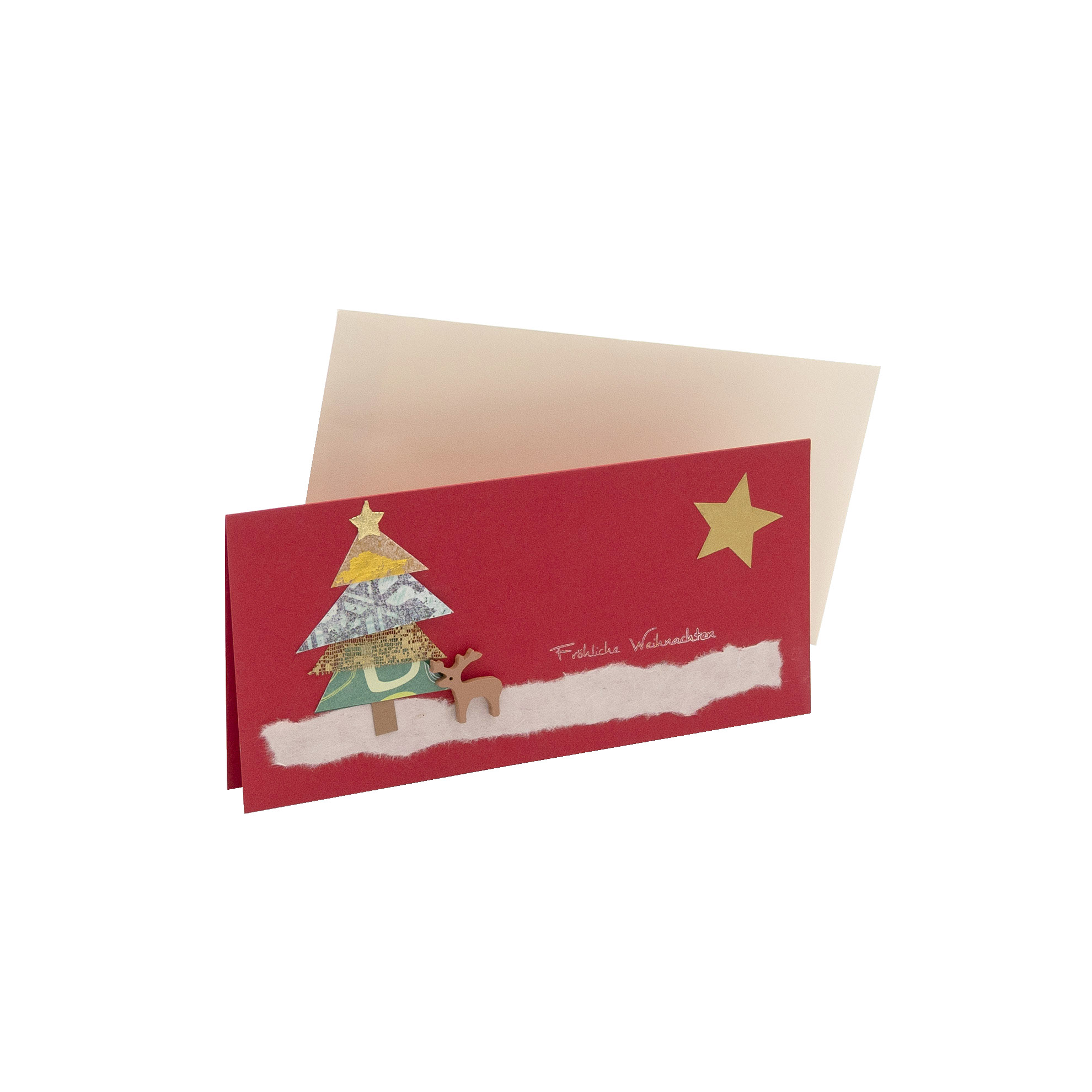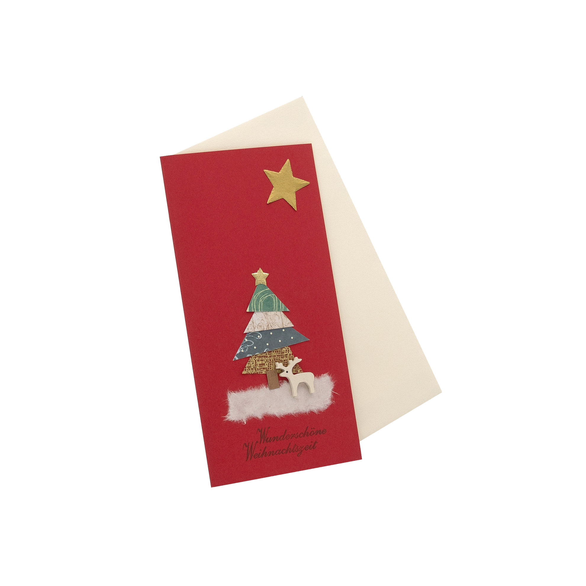 Das Karten-Sortiment für persönliche Festtags-Botschaften: unsere Weihnachtskarten im 3er-Set mit Collagen aus Papier und Textil werden ausschließlich von Hand gefertigt und bestehen zum Teil aus handgeschöpften Naturpapieren. Zusätzlich verziert mit Holzapplikationen in Form eines Rentiers.
