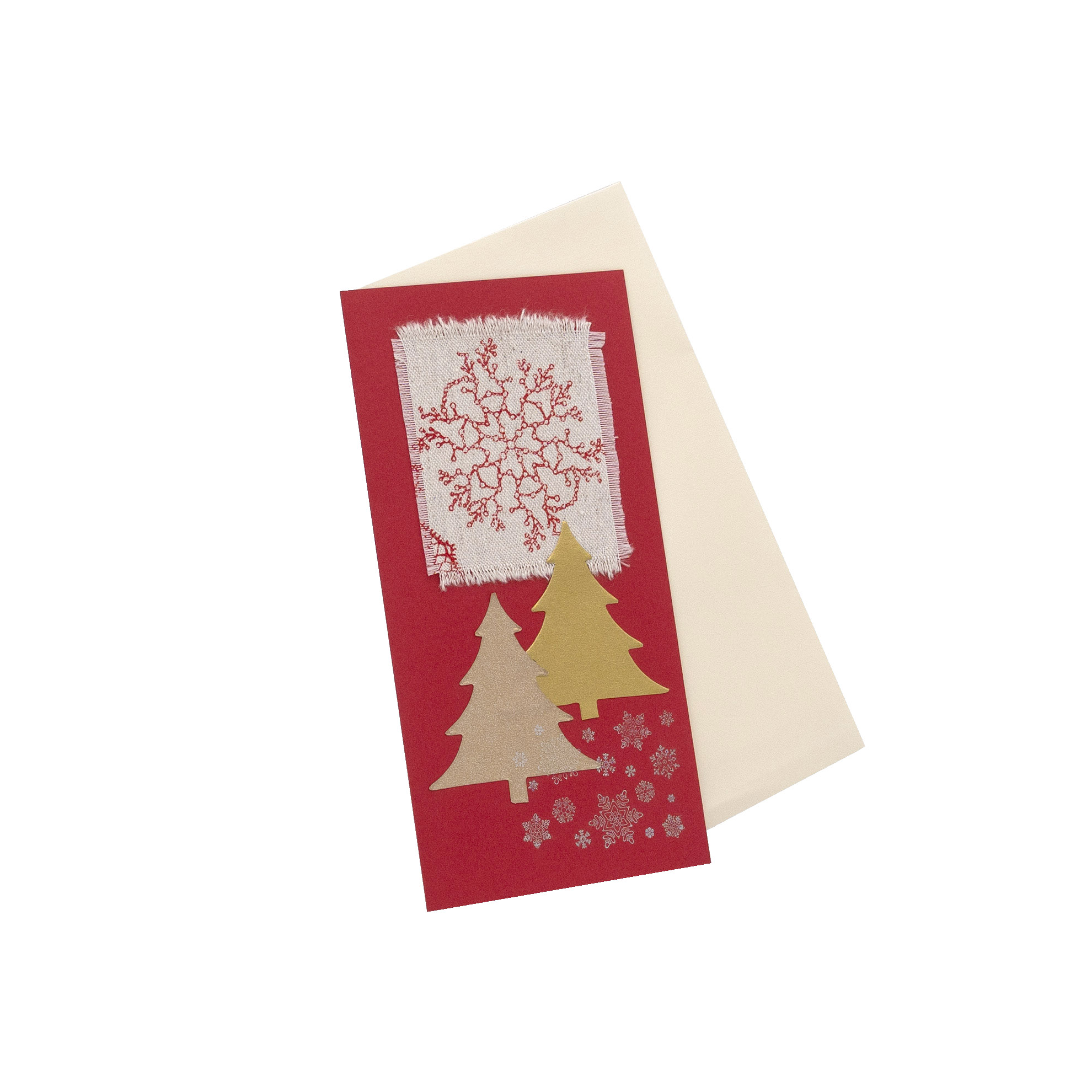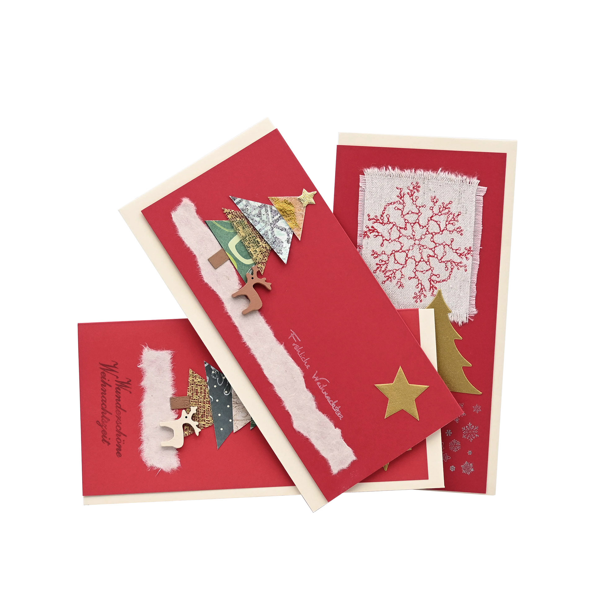 Produktinformationen "3er-Set Weihnachtskarten Tannen auf Rot "