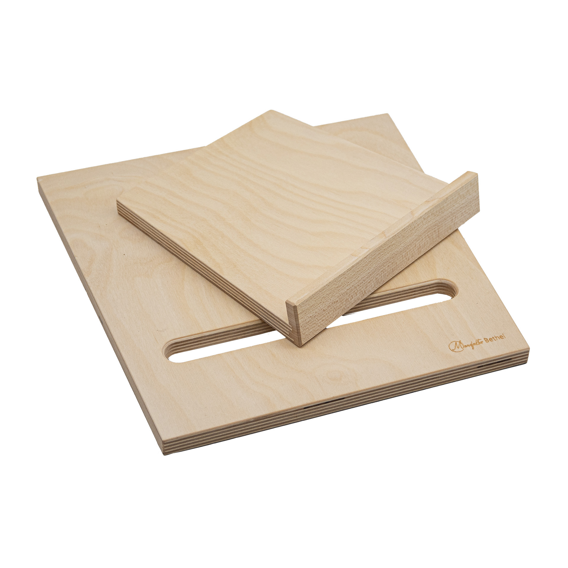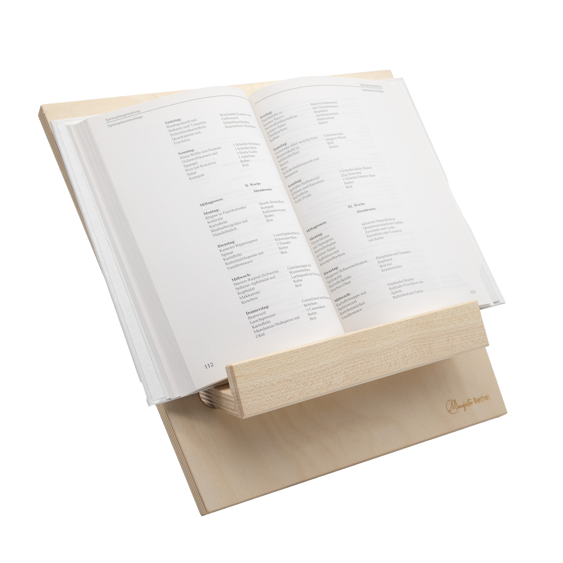 Moderne und schlichte Buchstütze aus Holz. Ob für Kochbücher in der Küche, oder Bücher im Büro.