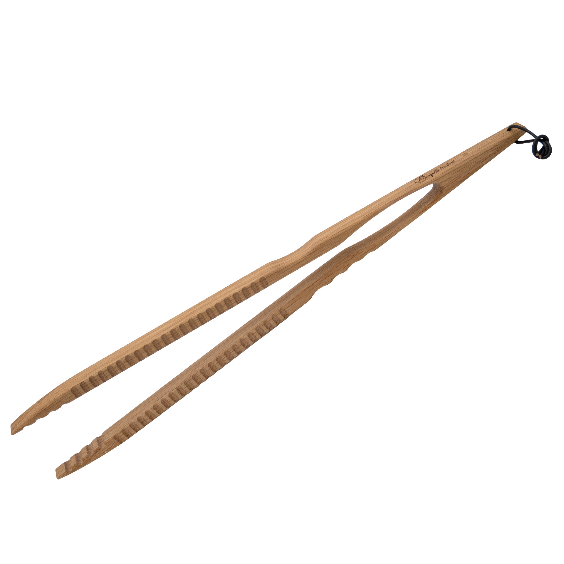 Durch das schlanke Design ist sie leicht zu handhaben und mit ihrer Länge von 59 cm ein praktischer Helfer im heißen Einsatz an Grill und Pfanne. Die Ausfräsungen für die Finger und die griffige Spitze ermöglichen ein sehr präzises Arbeiten. Die Rillen an den Zangenunterseiten sind wunderbar für das gleichzeitige Wenden mehrerer Grillwürstchen geeignet.