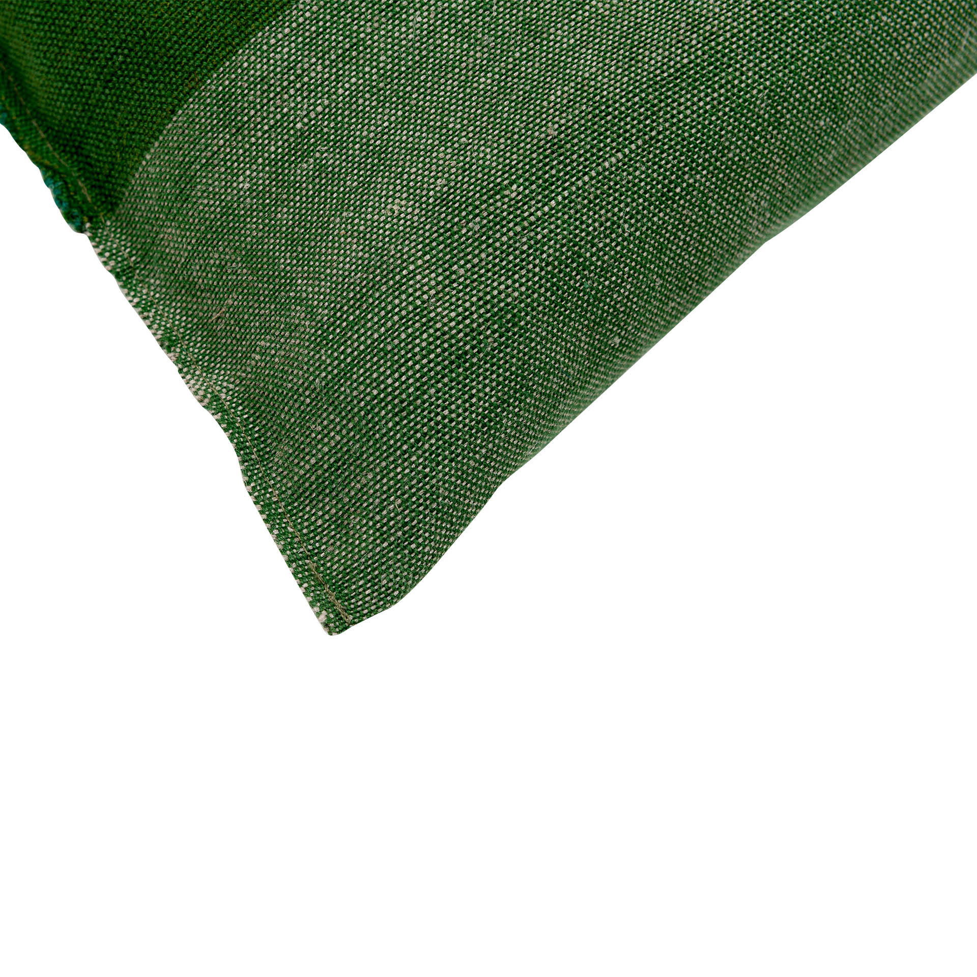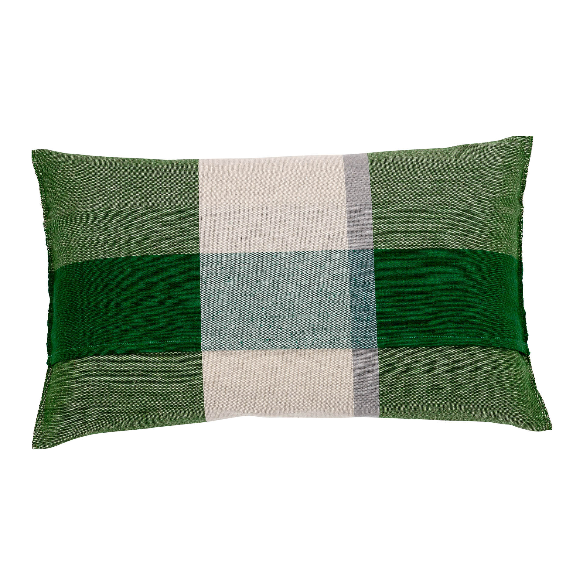 Accessoire mit Wohlfühlfaktor: Das handgewebte Kissen mit klassischem Muster in grün-weiß lädt nicht nur an festlichen Tagen zum Kuscheln und Träumen ein.
