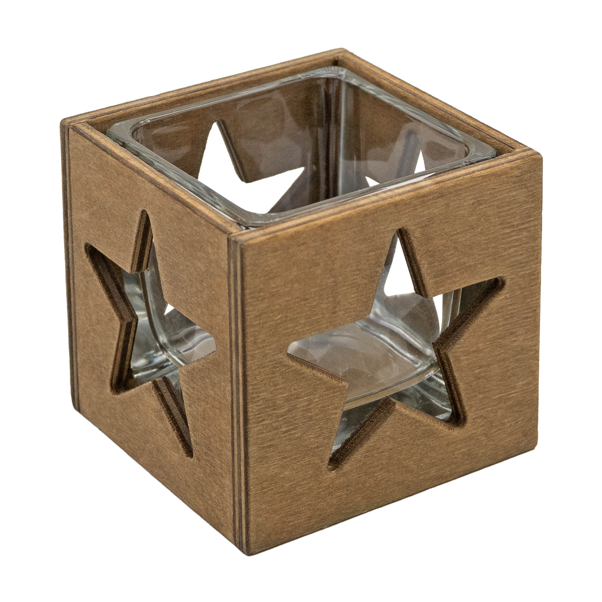 Festliches Stimmungslicht mit Sternmotiv, mit passendem Teelicht-Einsatz aus Glas.