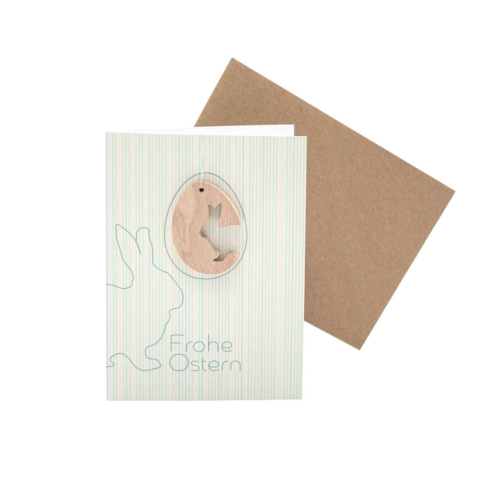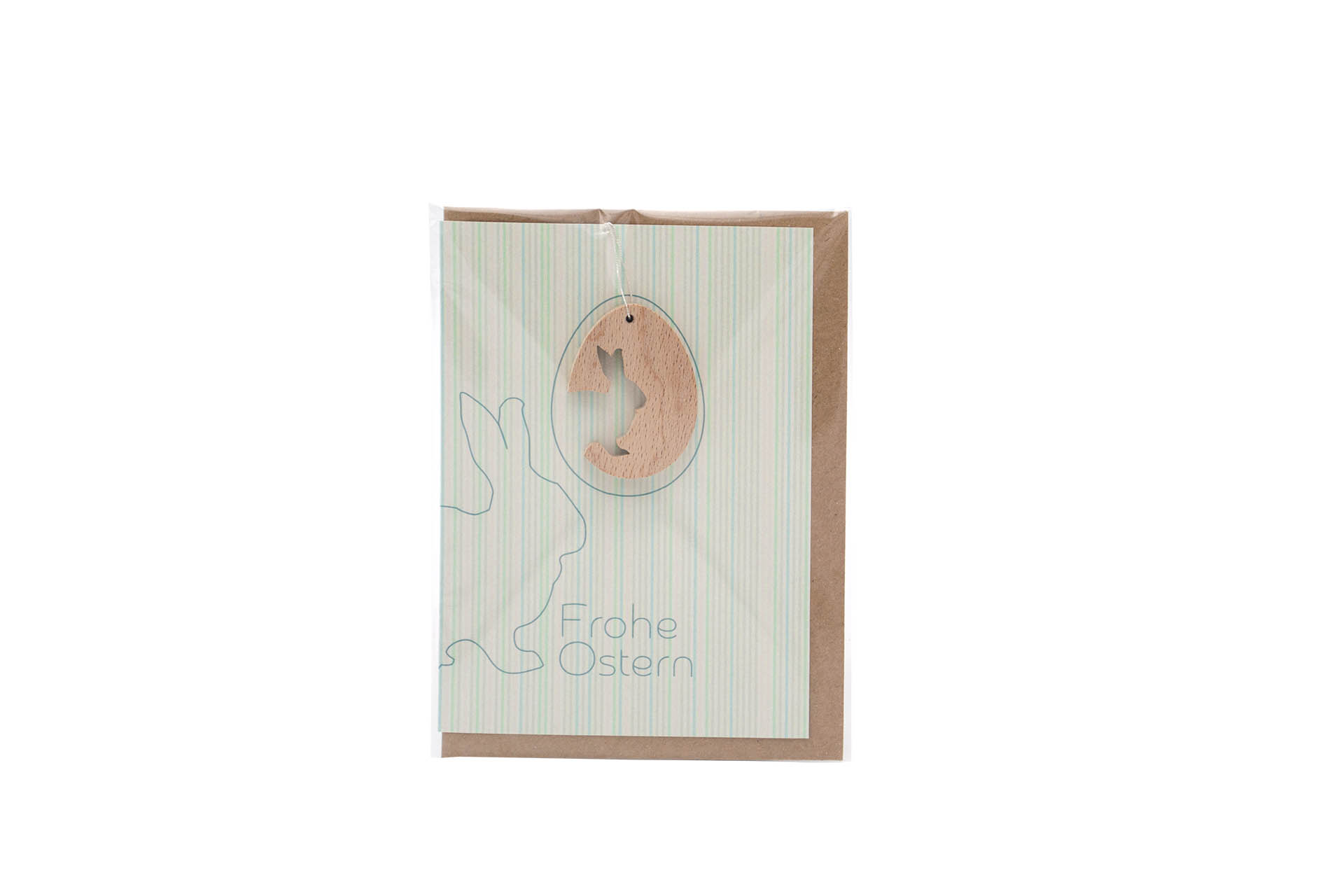 Besonderheit:Osteranhänger aus Holz ist wiederverwendbar, Doppelkarte mit Umschlag